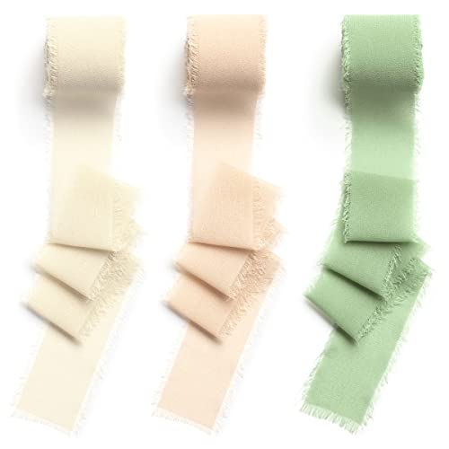 CHUQING 3,8 cm x 6 m presentband band band bröllop festival band sidenband dekorativa band chiffongband, beige, champagne, grön