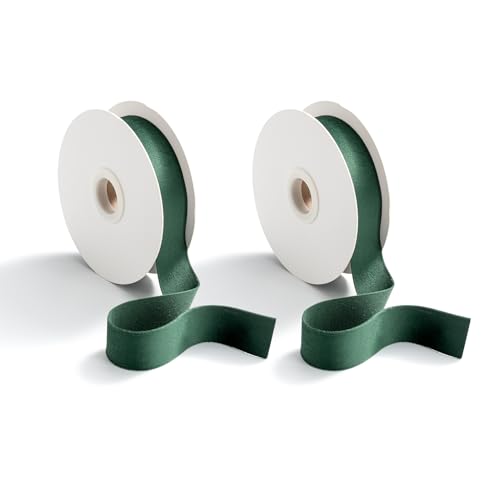 Halbach sidenband presentband | Bredd 25 mm längd 25 m | Band tillverkat i Tyskland | Presentband i olika färger och bredder, perfekt för förpackning och dekoration, färg: mörkgrön