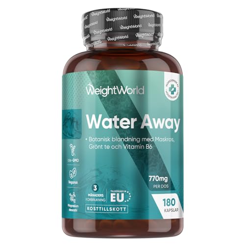 Water Away Kapslar - 11 i 1 Komplex i 3 månader - Med Äppelcidervinäger, Grönt Te, Maskros, Kalium - 180 Dräneringskapslar - Alternativ till Vattenbalans Kapslar & Vattentabletter - WeightWorld