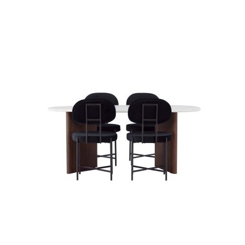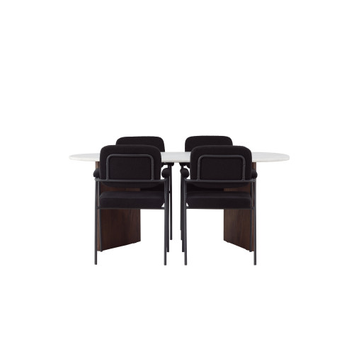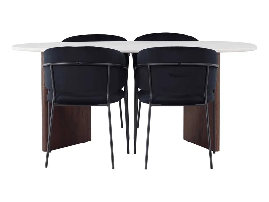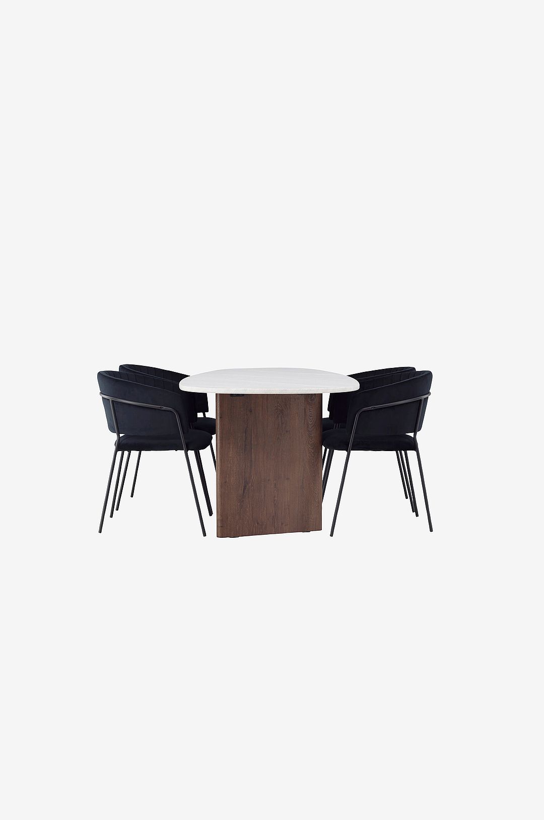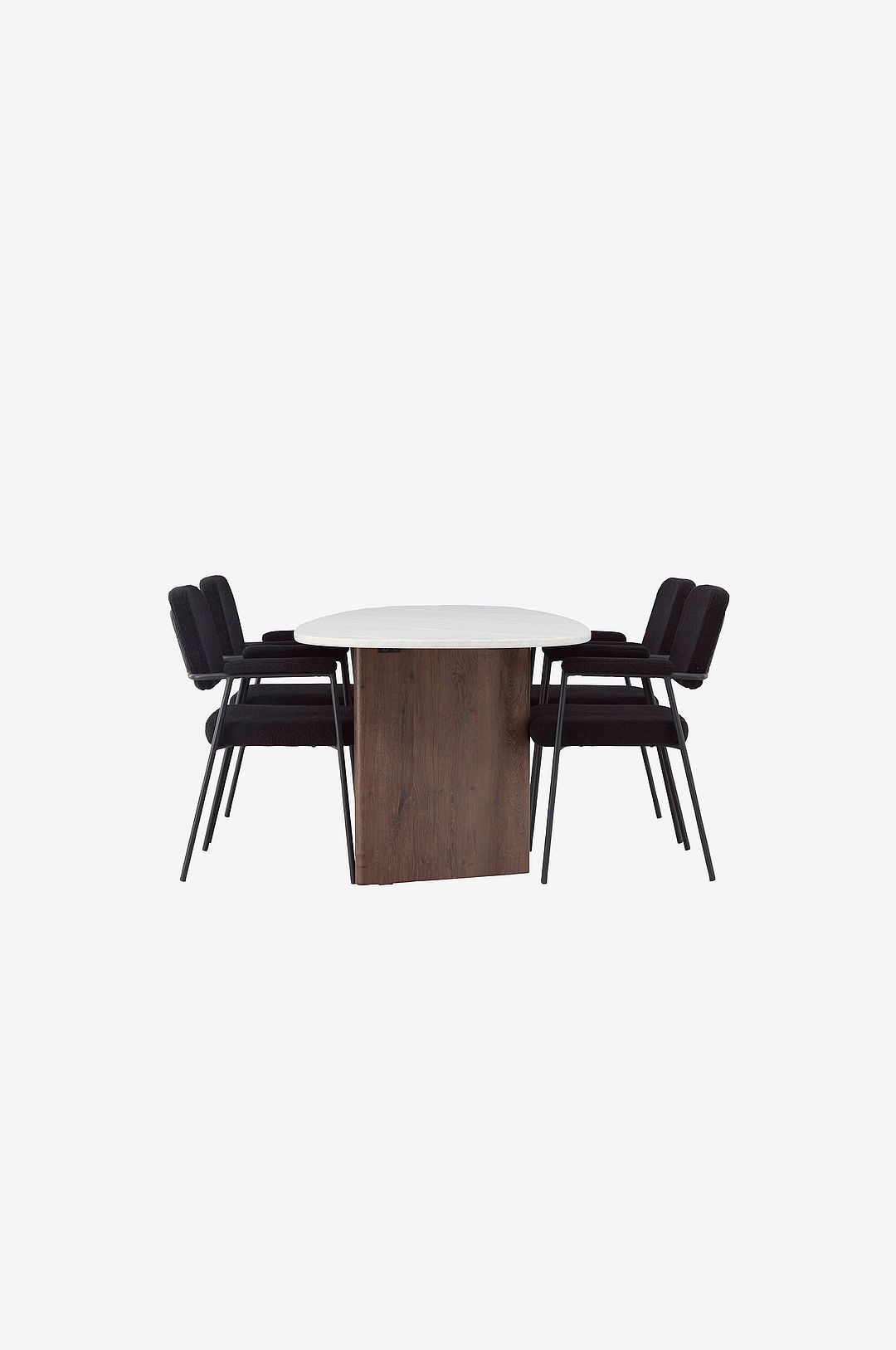 Venture Design Grönvik & Selma matgrupp Svart/ljusgrå 4 stolar & bord 180 x 90 cm