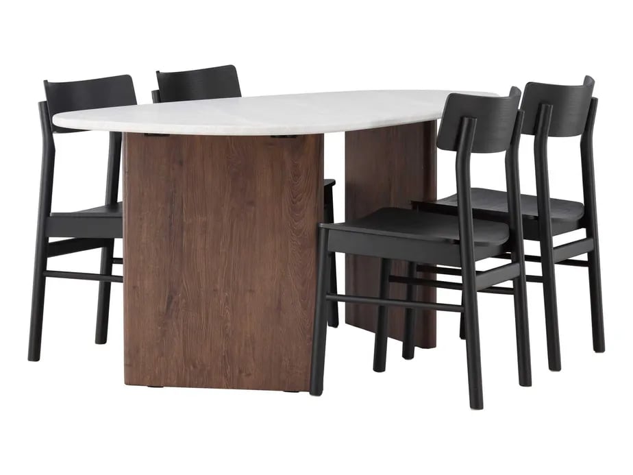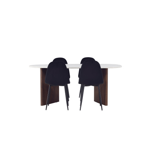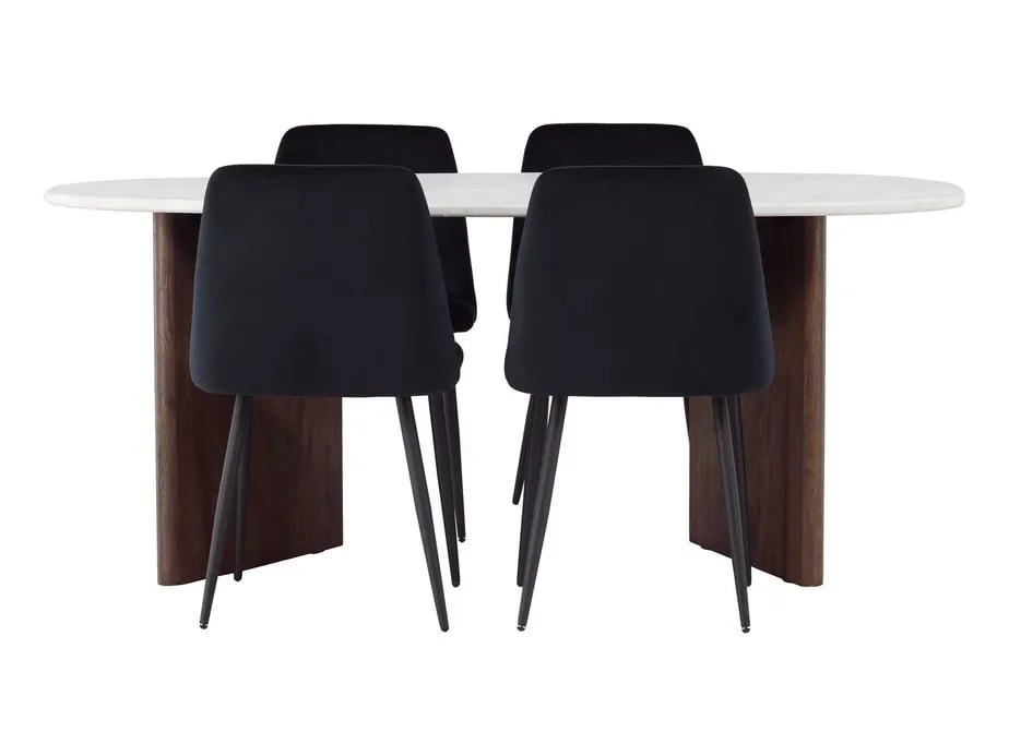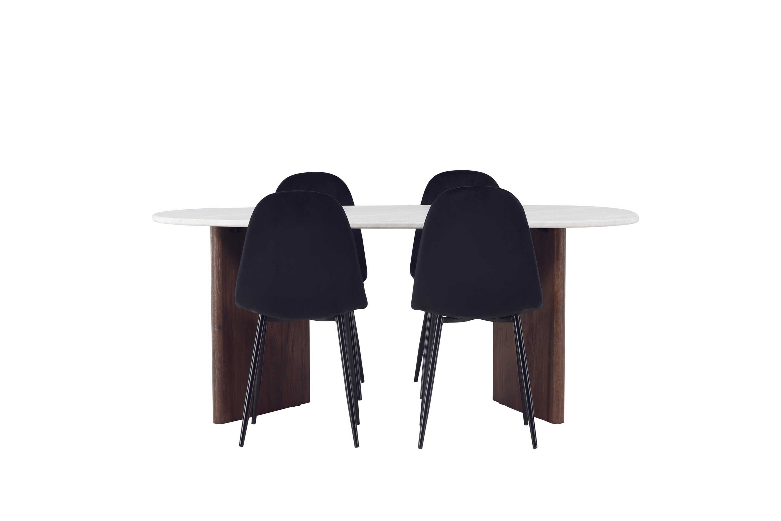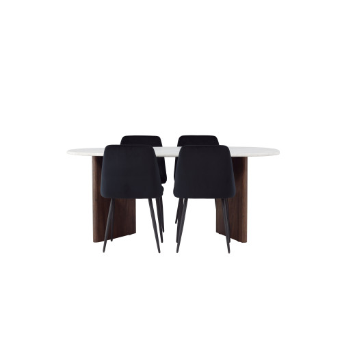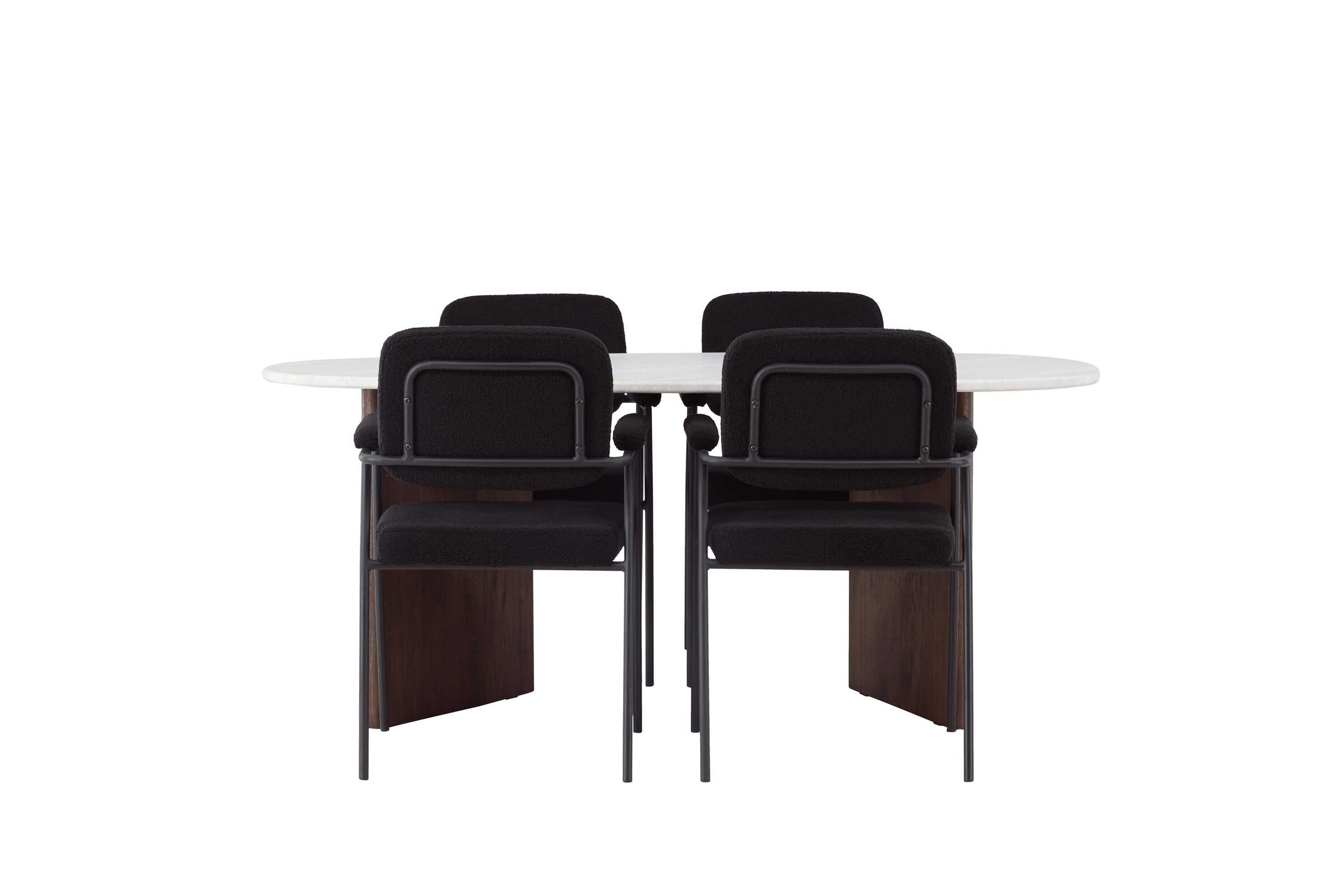 Venture Design Grönvik & Selma matgrupp Svart/ljusgrå 4 stolar & bord 180 x 90 cm