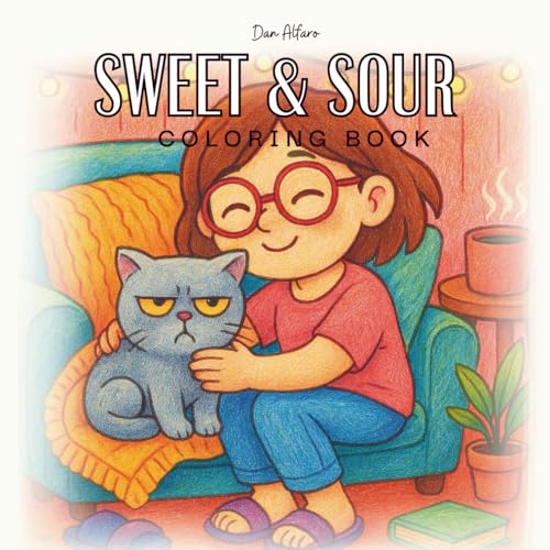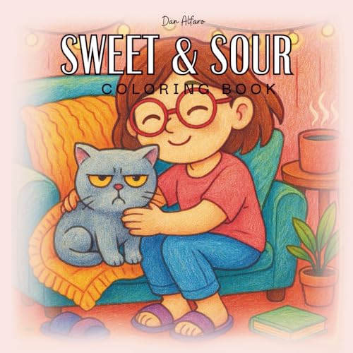 Sweet & Sour: A Cozy Coloring Book of a Teen Girl and Her Grumpy Cat's Daily Life: 40 Cute & Funny Scenes of a Teen Girl with Her Grumpy Cat | ... for Cat Lovers, Teens, and Cozy Vibes Fans