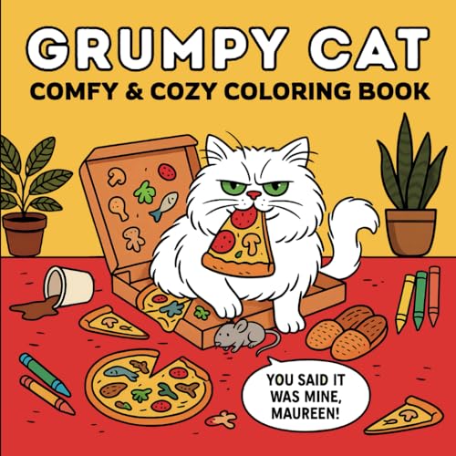 Grumpy Cat - Comfy & Cozy Coloring book: Funny Bold & Easy Contours for Adults, Kids, Teenagers, Seniors, Cat Lovers, and Anyone Who Adores a Furry, Hilarious Feline Attitude
