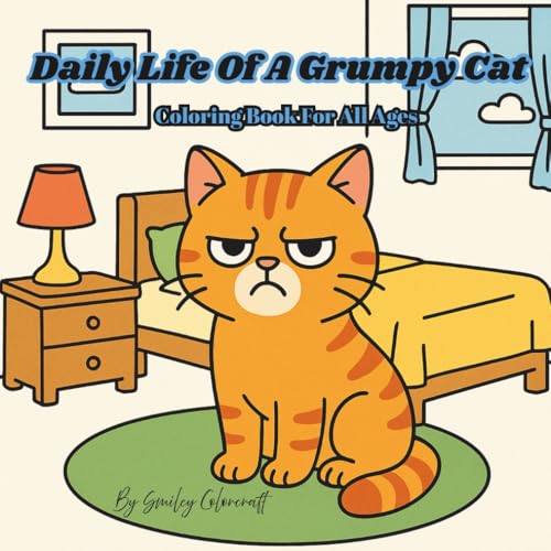 Daily Life Of A Grumpy Cat: Coloring Book For Adults And Kids, Featuring Simple And Bold Illustrations