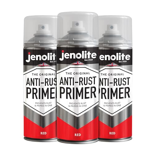 JENOLITE Anti-rost primer sprayfärg | röd | 3 x 400 ml | högpresterande metallprimer | rost- och korrosionsskydd | grundfärg för bilar, kylare, trädgårdsmöbler och mer