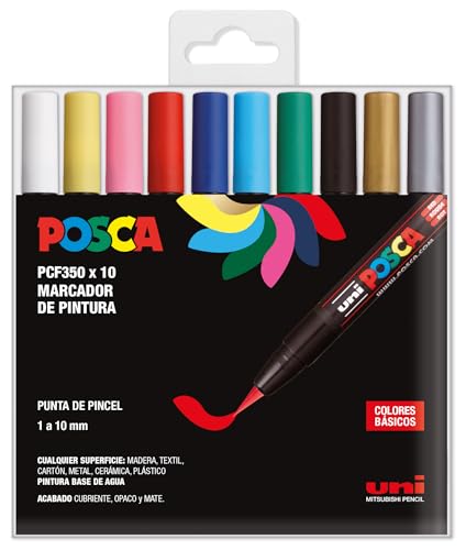 POSCA Uni-ball 186516 – POSCA märkpenna med fin rund spets, set om 16 st, grundfärger