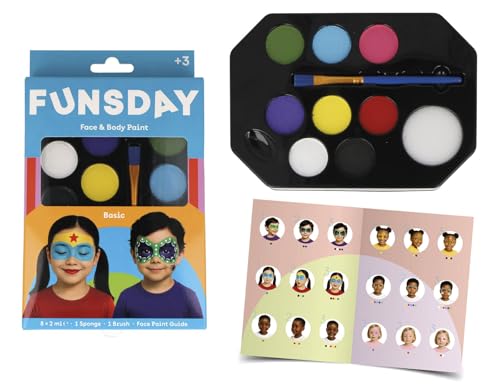 FUNSDAY Kit 8 ansiktsfärger grundfärger pensel och svamp