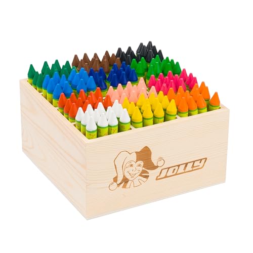 JOLLY Classpack – trä, färg, basfärger, trälåda med 144 vaxkritor, 12 grundfärger, tvättbar och giftfri, extra tjock spets, perfekt för skola och dagis