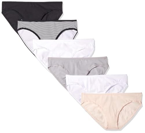 Amazon Essentials Women's Bikinitrosor underkläder i bomull (finns i plusstorlek), Pack of 6, Grundfärger, L