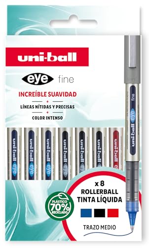 uni-ball etui 8 roller flytande bläck UB-157 grundfärger