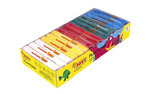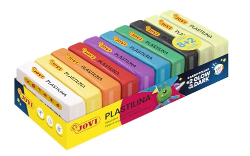 Jovi - Färgglad plast som lyser i mörkret - Förpackning med 10 tabletter med 50 gram, 8 grundfärger + 2 FOSFORESCENTES, icke-toxisk, vegetabilisk Jovi Plasticine för barn från 3 år (70/10G)