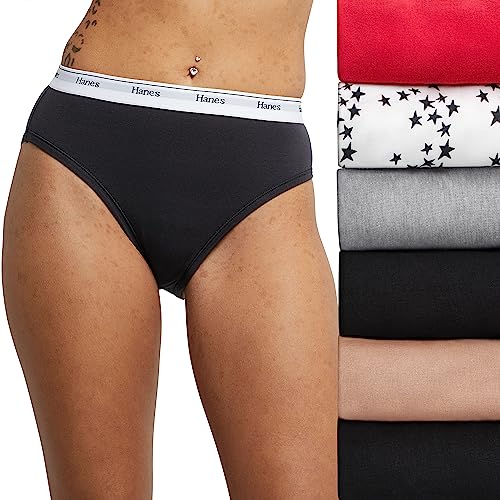 Hanes Dam Originals underkläder Leg, stretchbomull, Hi-ben-trosor, 6-pack trosor, grundfärgblandning, XXL, Blandning av grundfärger