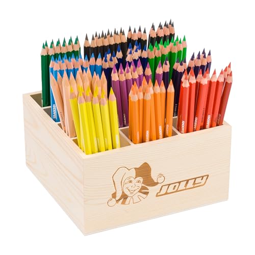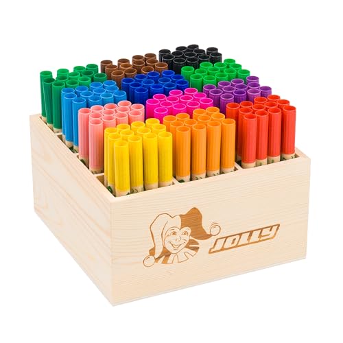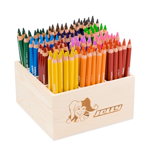 JOLLY Classpack – trä, supersticks klassisk, basfärger, trälåda med 144 färgpennor, 12 grundfärger, okrossbara och giftfria, perfekt för skola och dagis