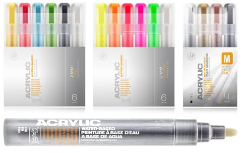 Montana Akryl märkpenna – Workshop komplett set – vattenbaserade pennor 2 mm neon – metallic – grundfärger – hållbar