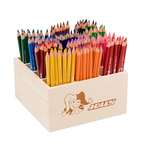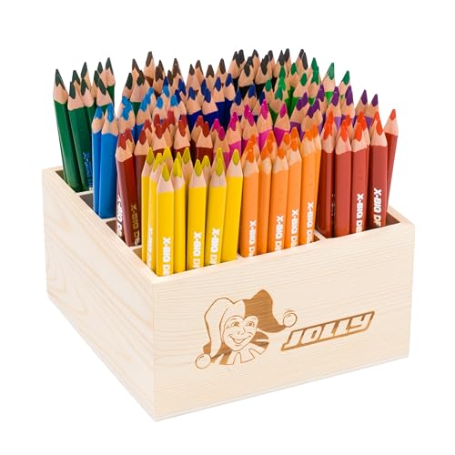 JOLLY Classpack – trä, X-Big, basfärger, trälåda med 144 färgpennor, 12 grundfärger, okrossbar och giftfri, extra tjock påfyllning, perfekt för skola och dagis