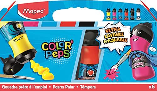 Maped M810010 – skolmålarfärg färgpeps, grundfärger, 6 x 75 ml