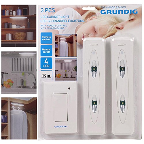 Grundig LED-skåpbelysning med fjärrkontroll, plast, vit, 23 x 21,5 x 1,5 cm, 2 enheter