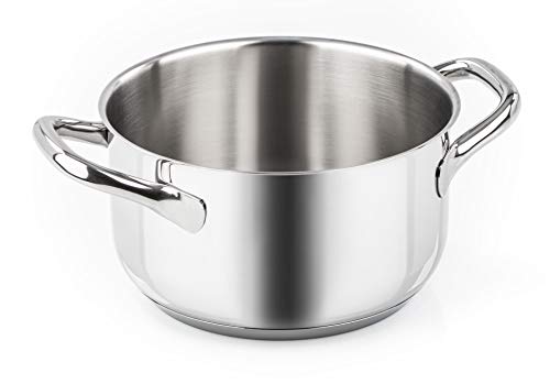 Barazzoni Chef Line gryta med 2 handtag, Ø 20 cm, kapacitet 3 liter, tillverkad i Italien, 18/10 rostfritt stål, induktion gas, trippel botten, PFAS-fri, silver
