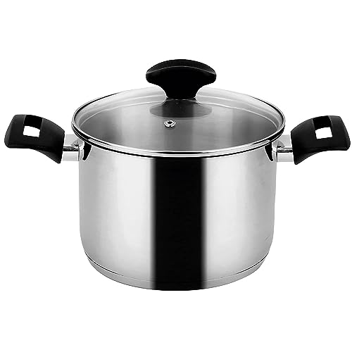 Fagor Alaia 18 cm induktionsgryta, 3 liter 18/10 rostfritt stål, glaslock, hög gryta med tre lager diffusorbotten, lämplig för alla kök, keramikhäll, gas, diskmaskin