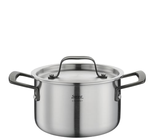 Spring kastrull Gourmet flerskikts gryta med lock av rostfritt stål, ugnssäker, med inre skala, Ø 16 cm, höjd 10 cm, 2 liter, svart
