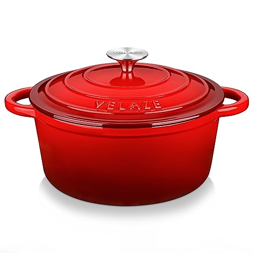 Velaze gryta maträtt gjutjärn bronsning panna oval, klassisk röd emalj holländsk ugn, non-stick emaljbeläggning, bra tätning, lätt, för alla värmekällor, grytkropp gjutjärn soppgryta 4 L