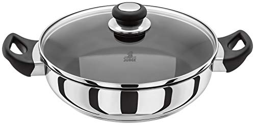 Judge Vista J232A Rostfritt stål non-stick stor gryta 28 cm stekpanna med okrossbart glaslock, induktionsfärdig, ugnssäker, 25 års garanti
