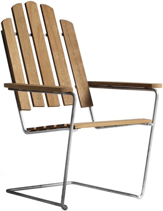 Grythyttan Stålmöbler, A3 solstol obehandlad teak / svart
