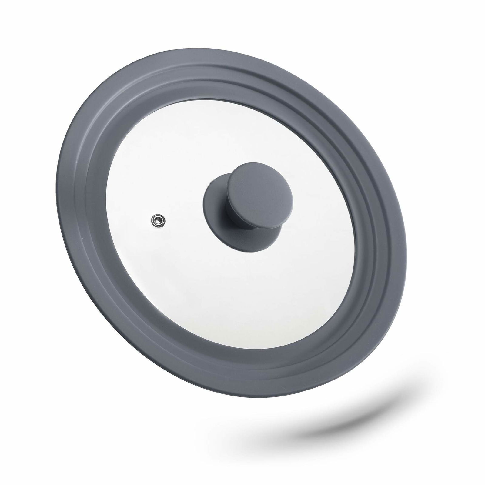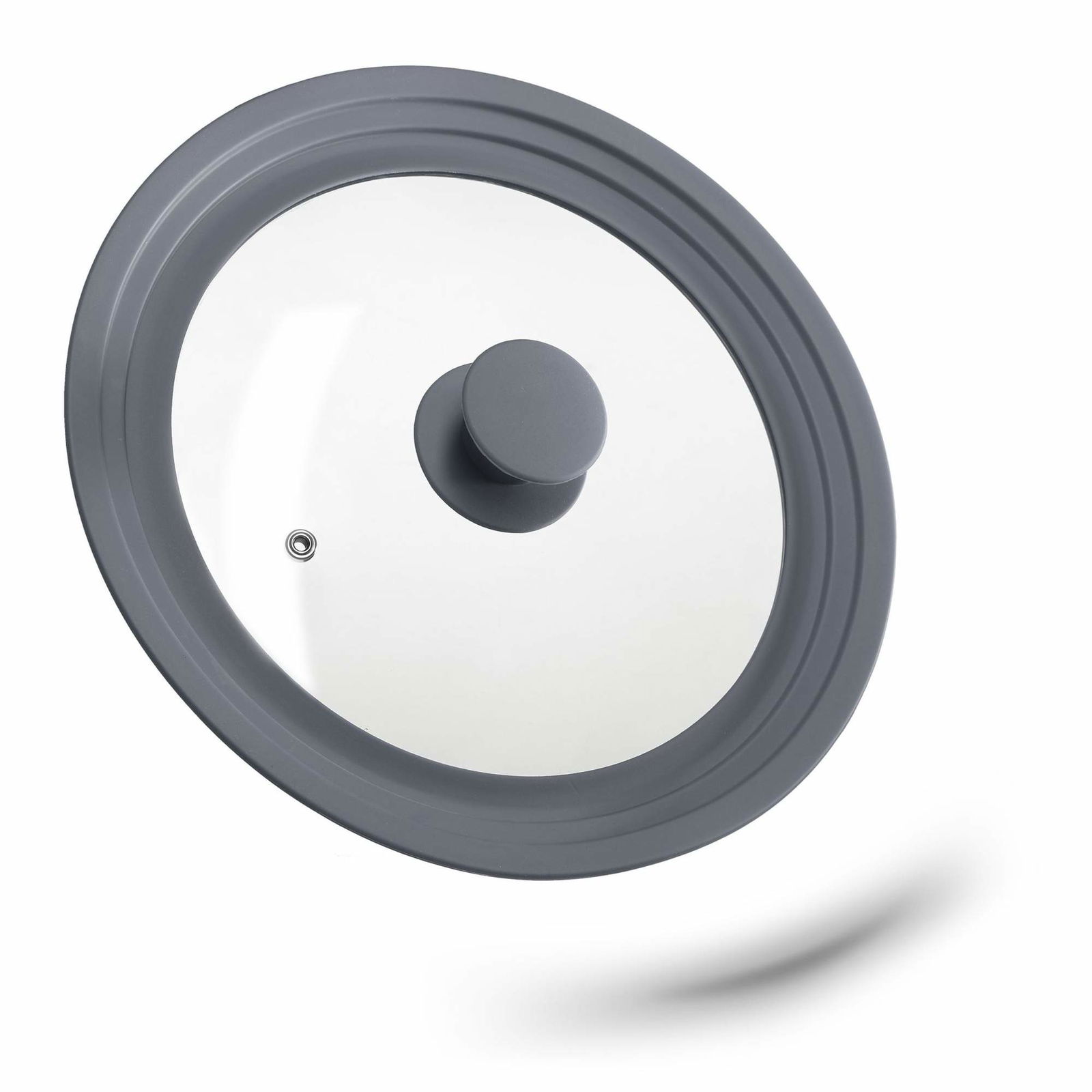 Relaxdays Grytlock universal, glaslock med graderad silikonkant, krukor och stekpannor 22–26 cm, H x D 5 x 27,5 cm, grå
