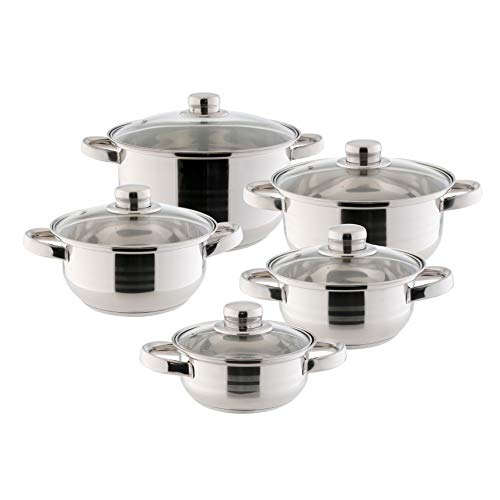 Karcher Grytset Jovita av rostfritt stål, köksredskap induktionskokkärl, krukor med glaslock/stekpanna/kastrull, 10 delar