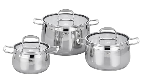 ELO Grytset MYSTERY, kastruller i rostfritt stål med hopfällbart glaslock och doseringshjälpmedel, köksredskap för keramik, gas, elektrisk, induktionsspisar – diskmaskinssäker, antal: 1 x set om 3