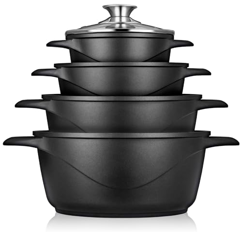 Briebe Grytset induktion 8 delar, kastrullset 4 krukor av gjuten aluminium, non-stick beläggning ILAG GRANITEC utan PFOA, glaslock silikon, glaskeramik, gas, ugn, MGK-12