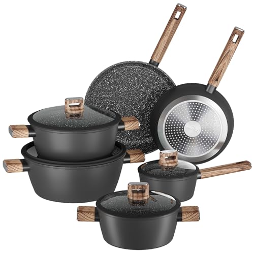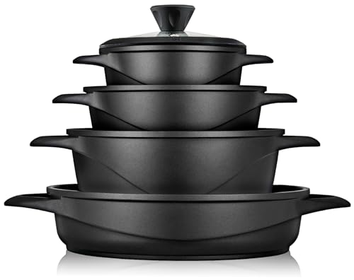Grytset, HOMELUX kastrullset induktion 10 delar, induktionskrukor set, krukor med glaslock, kastrullset, krukor och stekpannor, lämplig för induktion, svart
