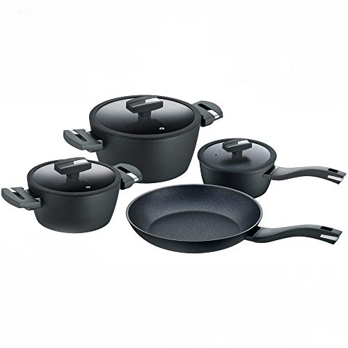 Berndes 4-delat kastrullset – aluminium induktion – grytset inkl. glaslock, non-stick belagd och lämplig för alla spisar, induktionskrukor, gryta, gjuten kastruller med non-stick beläggning, svart