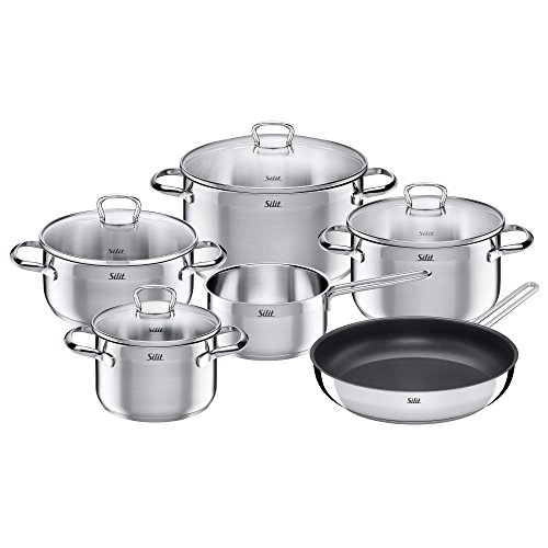 Silit Scalea Grytset induktion 6 delar, kastrull och stekpanneset, kastrullset med glaslock, stekpanna, polerat rostfritt stål, induktionskrukor, diskmaskinssäker