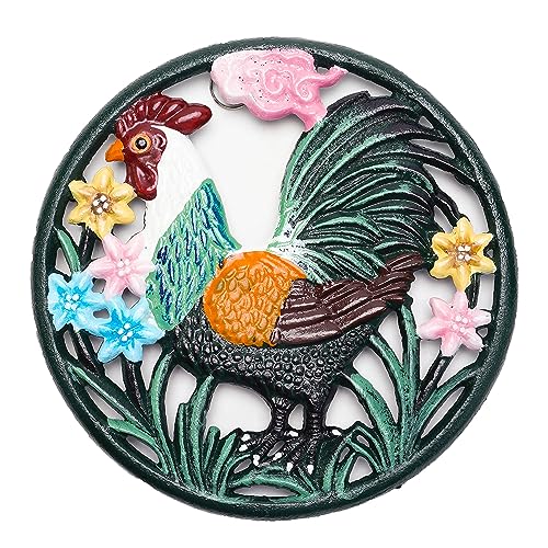 Sungmor slitstarkt gjutjärn runt grytunderlägg, Rostfritt tupp metallställ stativ hållare för varma kastruller eller tekanna, kök eller matbordsdekorationer