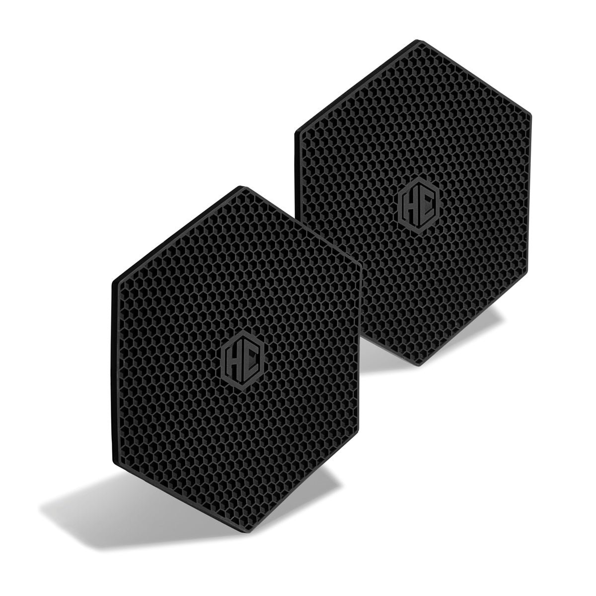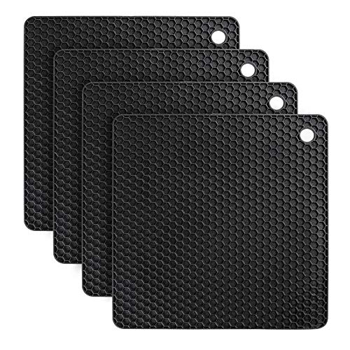 Flintronic Bordsmatta i silikon, 4 st halkfria grytunderlägg i silikon, 18,5 cm vaxkaka köksbord dyna för flera ändamål, skedstöd, matlagning och matsal (fyrkantig-svart)