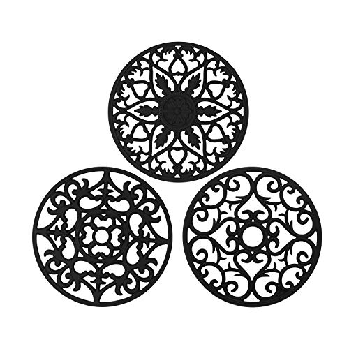 CREATESTAR Silikon multianvändning blomma grytunderlägg (set med 3-pack), premium kvalitet isolerade flexibla hållbara halkfria varma dynor och underlägg kopp