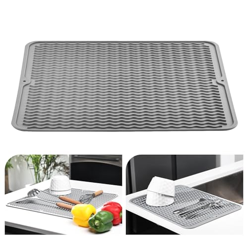KitchenRaku Uppgraderad disktorkmatta, silikon dräneringsbrädmatta, värmebeständig diskdräneringsmatta för kök, halkfri silikon grytunderlägg, bordsmatta, grythållare, bordstablett, skedstöd,