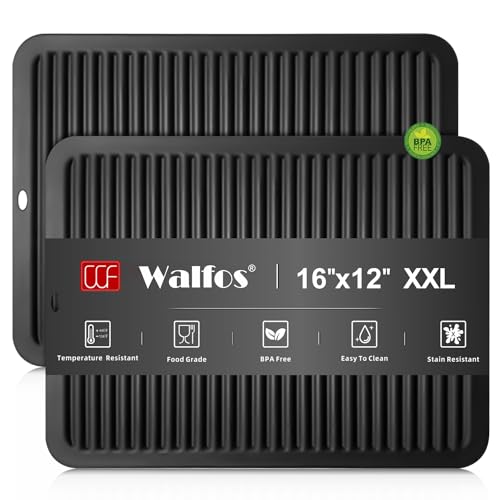 Walfos Stora grytunderlägg i silikon, 40 x 30 cm, grytunderlägg för krukor och stekpannor, värmebeständiga grytlappar för köksbänkskivor, varma rätter, 2-pack