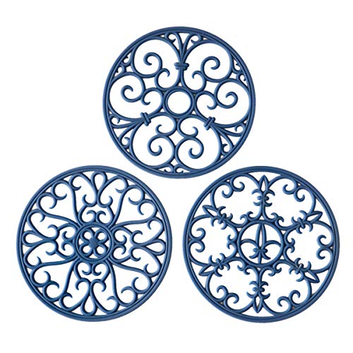 Grytunderlägg i silikon – varm grytlapp för bord och bänkskiva – tekanna grytunderlägg köksunderlägg – halkfria och värmebeständiga moderna köksunderlägg för krukor och varma skålar, marinblå,