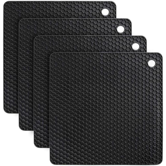 SET MED 4 Silikon Grytunderlägg - 18cm Värmebeständiga Underlägg Svart