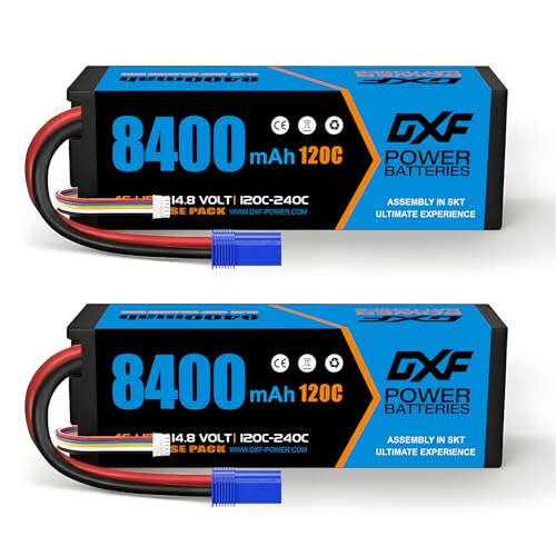 DXF 2 st 4S 14,8 V 8 400 mAh 120 C RC LiPo batteri med hårt fodral och 4s lipo batterier EC5-kontakt för 1/8 buggy truggy bilar – 4s lipo kompatibel med Arrma Kraton 8S, DBXL-ERC, Emaxx, Bandit och