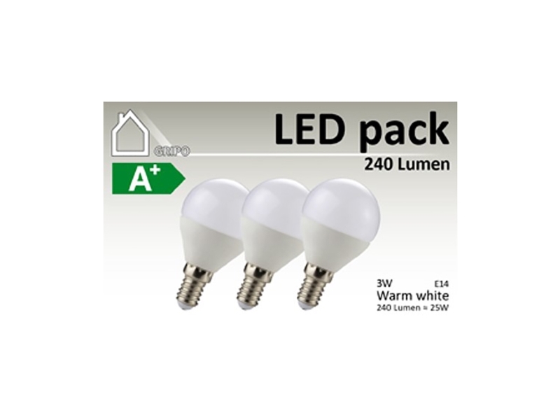 Gripo Led Pære P45 E27 3W Cri80 3Stk 3000K 240Lm &Gt 270Gr. 45X78 2835Smd 5Stk. - 1698635