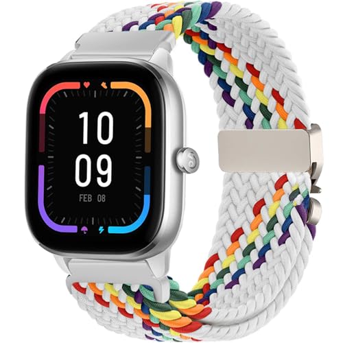 Issinlky Nylon flätat armband för Amazfit GTS 4 / GTS 4 Mini, GTS 3, GTS 2 / GTS 2 Mini/GTS 2e, GTS, 20mm elastisk armband för Amazfit Bip 3 / Bip 3 pro, Bip U/Bip U Pro, Bip S/Bip S Lite, Bip