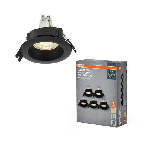 OSRAM Spot Set LED infälld spotlight GU10 Press 2,6W svart, 200lm 2700K varmvit, CRI≥80, plasthölje, 5-pack