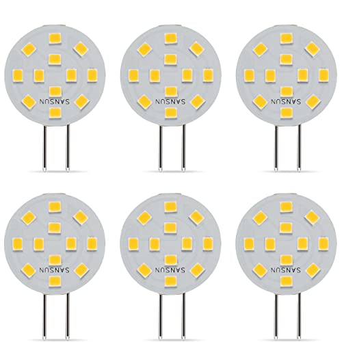 SANSUN G4 LED-lampor 2 W motsvarar 20 W halogen, G4/GU4/GZ4 Bi-Pin Base, AC/DC12V 3000K 120° vidvinkel, icke-dimbar (varmt vit, 6-pack)