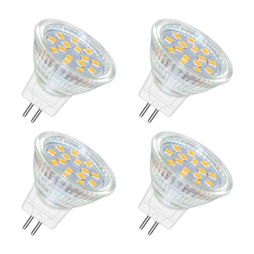 HRYSPN LED MR11 glödlampor 2 W 12 V, GU4 varmvit 3 000 K, 20 W halogen ekvivalent, MR11 G4/GU4.0 LED glödlampa för hem, landskap, infälld, spårbelysning (förpackning med 4)