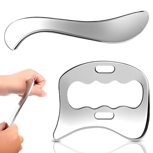 Dulynva Gua Sha rostfritt stål 2 i 1 Gua Sha skrapa massage verktyg muskelskrapa verktygsset fascia skrapa för fysioterapi, ben, rygg, ansikte, muskelavslappning och smärtlindring