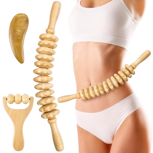 ACWOO Fascia Roller Wood, 3 Delar Stick, Massage Roller Trä, Anti Celluliter Massager för Muskelavslappning, Kroppsformning, Gua Sha Massage