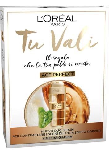 L'Oréal Paris Age Perfect Jullåda med Le Duo Anti-Age Serum och Gua Sha-sten, för alla hudtyper, uppstramande och lysande dubbelverkande, med kollagen och vitaminer B3 och C, 30 ml